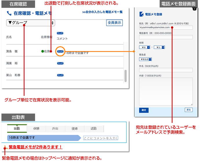 但し、サードパーティー製品では、グループウェアの勤怠管理と同じサービスが提供されていますので、そちらを利用されるのをお勧めします。